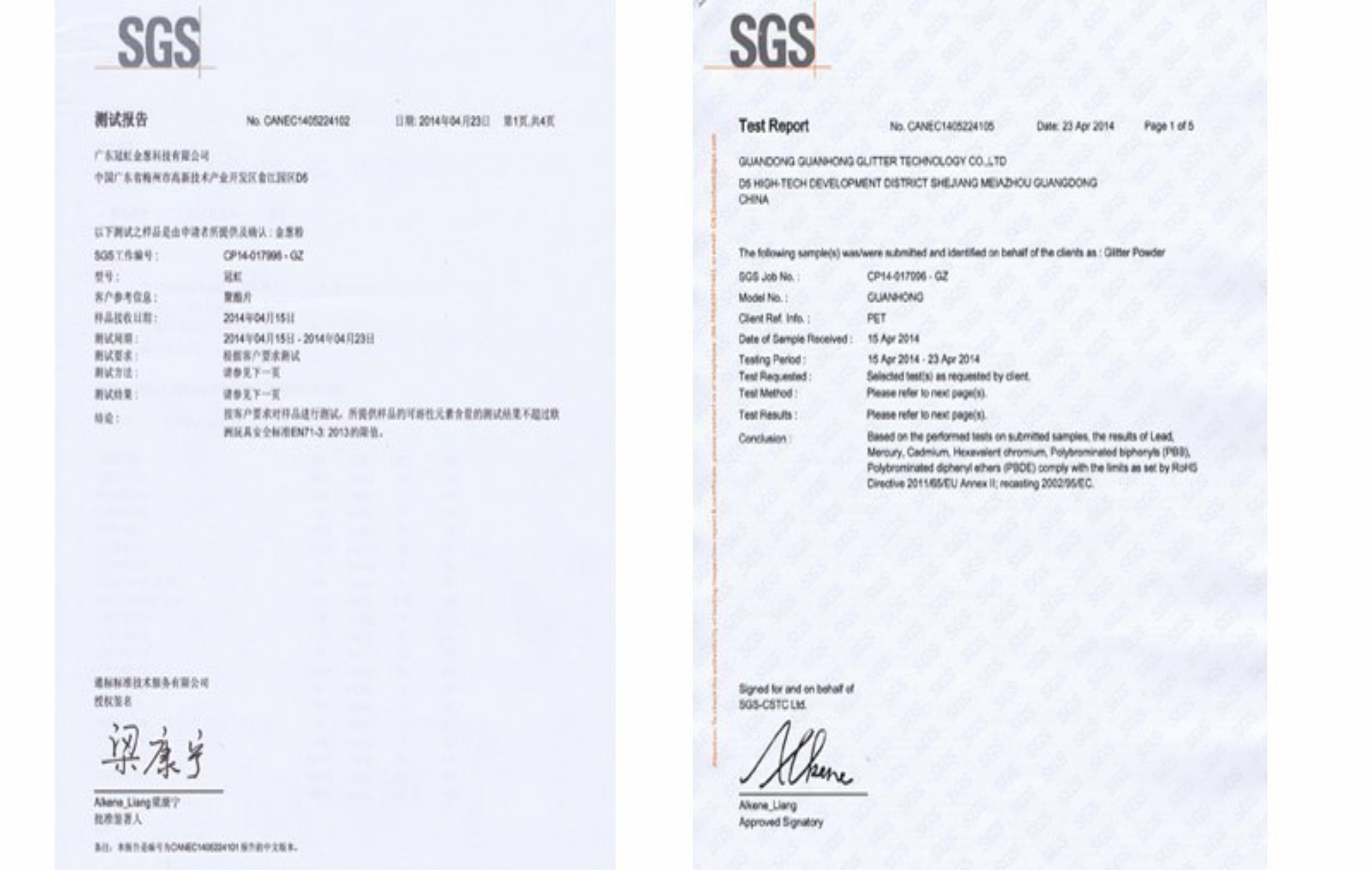 冠虹金葱专注于品品质及服务的不断创斎ͼ以负责的态度向各应用行业提供品质可靠的品及应用解决Ҏ(gu)Q品通过EN71-3、ROHS、Formaldehyde、HR4040、MSDS{检及体系认证?/div>